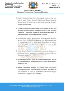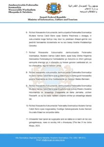 10- Ra’iisul Wasaaraha Xukuumadda Federaalka Soomaaliya Mudane Xamsa Cabdi Barre ayaa magacaabey Guddiga Qabanqaabada Xuska Sannad Guurada 63aad ee xoriyadda dalka.