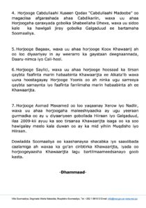 Dowladda ayaa sheegtay in illaa 7 xubnood lagu kala dilay Gobollada Shabeelaha Dhexe iyo Galgaduud oo todobaadyadii u dambeeyay ay ka dhacayeen howlgallada ka dhanka ah ‘AS’ halkaasina ay ka dhaceen iska hor imaadyo & duqeymo.