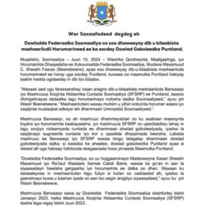 Qoraal kazoo baxay Wasiirka Qorsheynta, Maalgashiga, iyo Horumarinta Dhaqaalaha ee XFS, Mudane Maxamuud Cabdiraxmaan Sheekh Faarax, ayaa lagu sheegay in Dowlada Soomaalia ay soo dhaweeynayso dib-u-bilaabista mashaariicda horumarineed ee horay uga socday Maamulka Puntland, kuwaas oo maamulka Puntland hakiyay balse hadda ogolaaday in dib loo bilaabo.