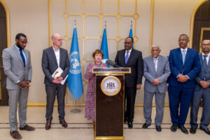 “Aad ayaan ugu faraxsanahay inaan maqlo sida cad ee ay madaxweynaha uga go’an tahay wadahadalka, sidoo kalena doorkiisa ka qaadan doono unkidda iyo dhamaystirka Geeddi-socodka Dib-u-eegista Dastuurka,” ayay tiri Marwo Catriona. “Waxaan sidoo kale boggaadiyey taageerada buuxda iyo xafiisyada ballaaran ee Qaramada Midoobay lagu deeqay si ay isugu dayaan inay gacan ka geystaan sidii tallaabo horey loogu qaadi lahaa sida ugu dhaqsaha badan, Maxaa yeelay, haddii ay Soomaaliya oo dhan ka hirgasho dowlad sal adag, waxaan sidoo kale awood u yeelan doonnaa inaan diiradda saarno arrimaha muhiimka ah ee horumarinta dhaqaalaha iyo shaqo abuurka dhalinyarada – waxyaabaha u sahli doona Soomaaliya inay qayb libaax ka qaadato arrimaha gobolka iyadoo ah dal barwaaqo ah oo xasilloon.”