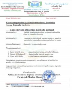 Gudoomiyaha D/Guriceel Faarax Cabdi Macalin ayaa magacaabay seddex ka mid Agaasimayaasha Degmada.