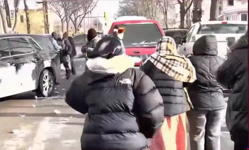 Muuqaalada la helay ayaa muujinaya xaalad kacsan, iyadoo qof katiinado lagu xirayo isagoo jiifa barafka, halka ay jireen buuq, mudaharaadyo iyo dad ka careysan tallaabooyinka ay qaadeen saraakiisha. Ciidamo ka tirsan Xafiiska Sheriff-ka Gobolka Hennepin ayaa goobta yimid, kuwaas oo sheegay in aysan arag wax weerar ah balse ay fududeeyeen bixitaanka saraakiisha federaalka.