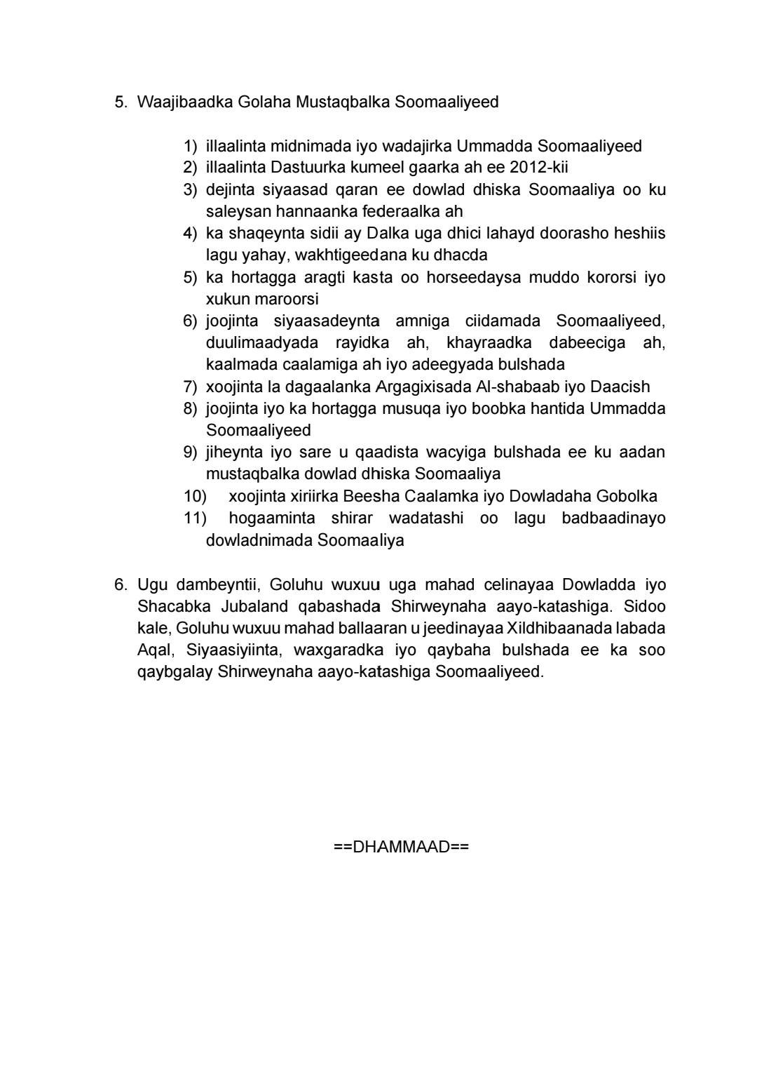 Madaxda Mucaarad ee Golaha Mustaqbalka Soomaaliyeed ayaa caawa oo saaray War-murtiyeed, kaasi oo looga hadlay arimaha hortatabinta leh ee Golaha. 22/12/2025 FacebookTwitterLinkedinEmailPrint Madaxda Mucaarad ee Golaha Mustaqbalka Soomaaliyeed ayaa caawa oo saaray War-murtiyeed, kaasi oo xariira arimaha hortatabinta leh ee Golaha. halkaan hoose ka aqriso Qodobada Warmurtiyeedka.