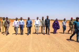 Madaxweynaha oo ay wehliyaan Xubno ka mid ah Golayaasha Dowlada, Maamulka Degmada iyo guddiga dhismaha garoonka Diyaaradaha Degmada balanbal ayaa si wadajir xariga uga jaray dhismaha garoonka diyaaradaha oo wajigiisa koobad soo dhamaaday.