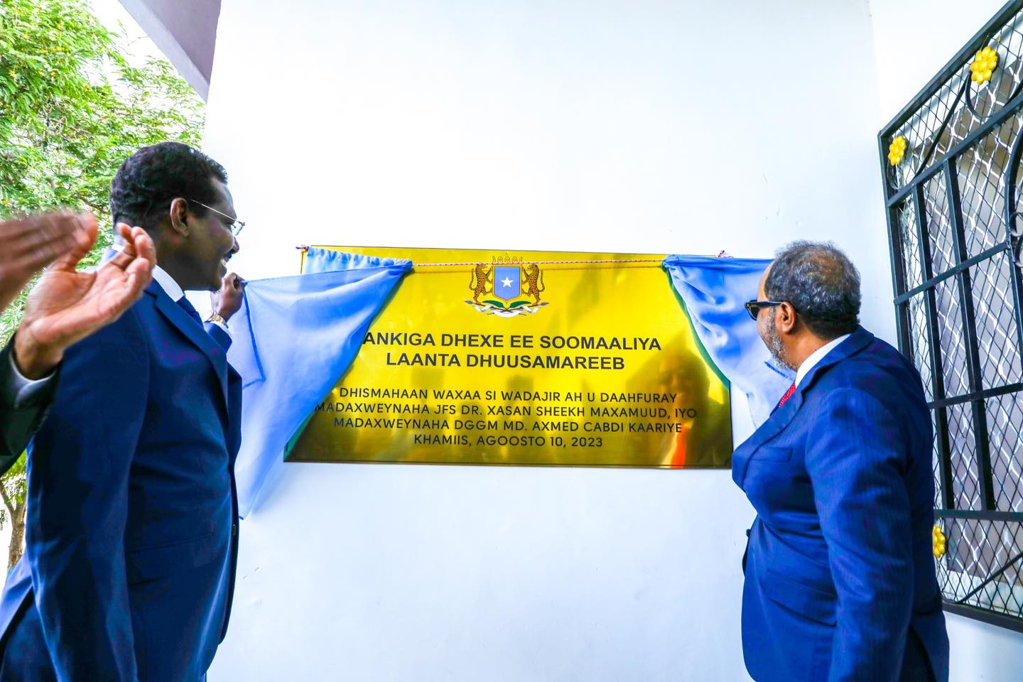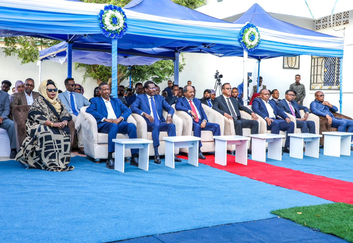 DHUUSAMAREEB: Madaxweynaha Jamhuuriyada Federalka Soomaaliya mudane Xasan Sheekh Maxamuud iyo Madaxweynaha Galmudug mudane Axmed Cabdi Kaariye (Qoor-qoor) ayaa siwadajir ah u xarigga uga jaray laanta Bangiga Dhexe ee Caasimada Dhuusamarreeb.