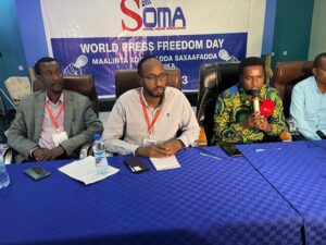 Ugu horeyn Gudoomiyaha Ururka SOMA Hilaal sheekh shuceyb ayaa furey Munaasabada 3 May oo ah maalinta Xuriyada Saxaafada, G/miyaha ayaa soo jeediyey Khudbad dheer oo ku saabsan Xuriyada Saxaafada Aduunka Gaar ahaana Somalida. Gudoomiye hilaal sheekh shuceyb ayaa ugu Hambalyeeyey Saxafiyiinta Somaliyed maalinta Xuriyada Saxaafada.