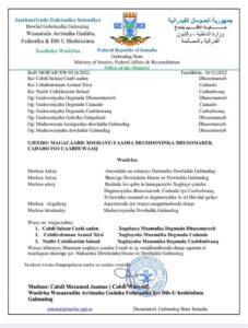 Wasiirka Wasaaradda Arrimaha Gudaha Federalka iyo Dib-U-Heshiisiinta Dowladda Galmudug Mudane Cabdi maxamed Jaamac(Cabdi Waayeel) ayaa Magacaabay Xoghaye-Yaasha Degmooyinka Dhuusamareb, Cabudwaaq Iyo Cadaado.