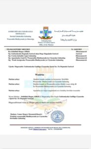 Wareegto ka soo baxay xafiiska wasiirka wasaaradda dhalinyarada iyo ciyaaraha Galmudug Cumar sheegow maxamed, ayaa guddoomiyaha gudiga ciyaaraha degmada Guriceel loogu magacaabay Cabdullaahi Shagax Afdhuub.