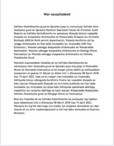 Xafiiska Hantidhawrka guud ee Qarankaoo ku wareejiyay Xafiiska Xeer-ilaaliyaha guud ee Qaranka Warbixin fatasheed lagu sameeyey qaar kamid ah hay.adaha Dowlada.