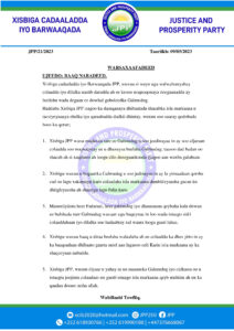 Xisbiga Cadaaladda iyo Barwaaqada ee Galmudug, ayaa Baaq Nabadeed ah ka soo saaray Dagaal Beeleedyada ka soo cusboonaaday qeybo ka mid ah deeganada dhaca koonfurta Caasimadda Galmudug ee Dhuusamareeb.